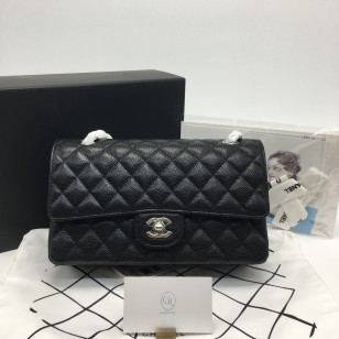 샤넬 클래식 미디움 캐비어 블랙 은장