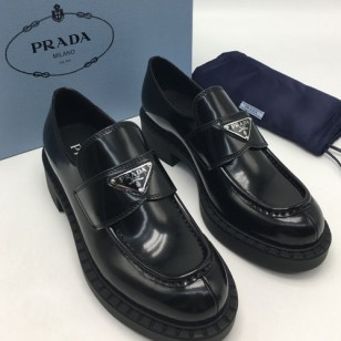 프라다 초콜렛 트라이앵글 로고 브러쉬드 로퍼 블랙 1D246M 검수사진