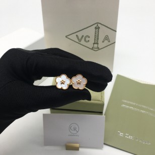 반클리프 럭키스프링 프럼 블로썸 귀걸이 화이트