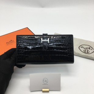 에르메스 베안 장지갑 크로커다일 블랙