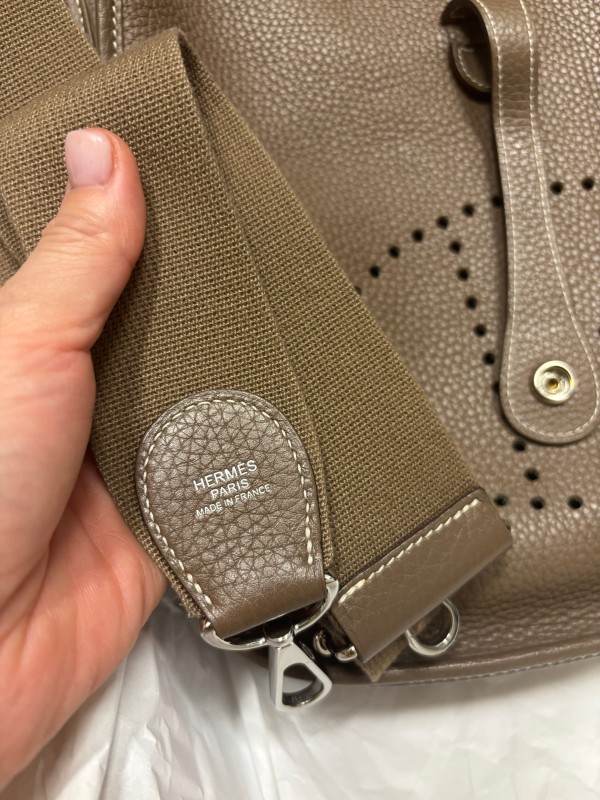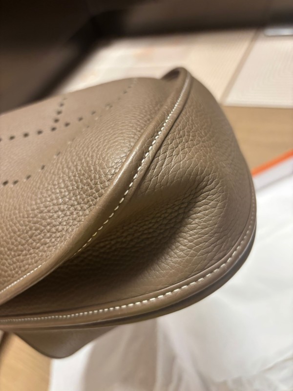 바닥 모서리 부분은 살짝 주름이 잡혀 있고(사용하다 보면 자연스러워질 듯) 안감 쪽 가죽결은 정품보다는 조금 투박한 느낌이 있어요 하지만 실제로 메고 다니면 그런 부분은 거의 티가 안 나요
