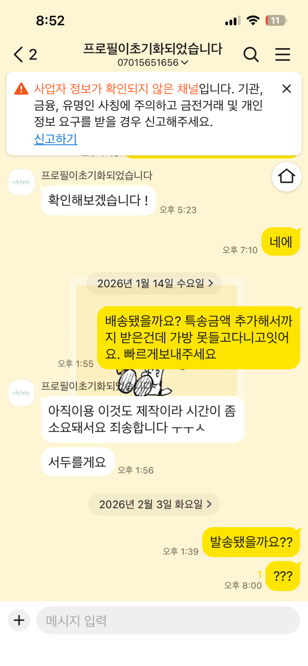 이후 감감무소식 카톡문의도 대답없음