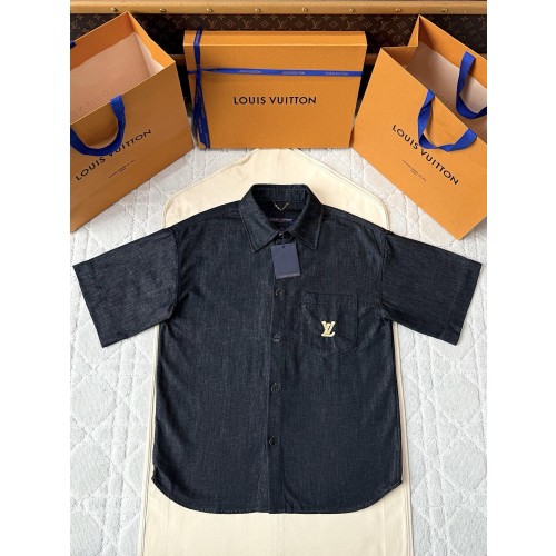 • 루이비통 25SS 자수 데님 반팔 셔츠