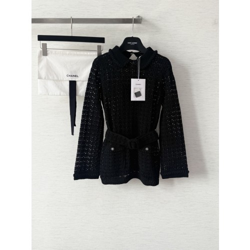 • 샤넬 26C 오픈워크 텍스처 웨이스트 핏 니트 가디건
