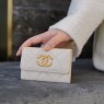 • 샤넬 19 플랩 카드지갑 램스킨 금장 베이지 AP1790