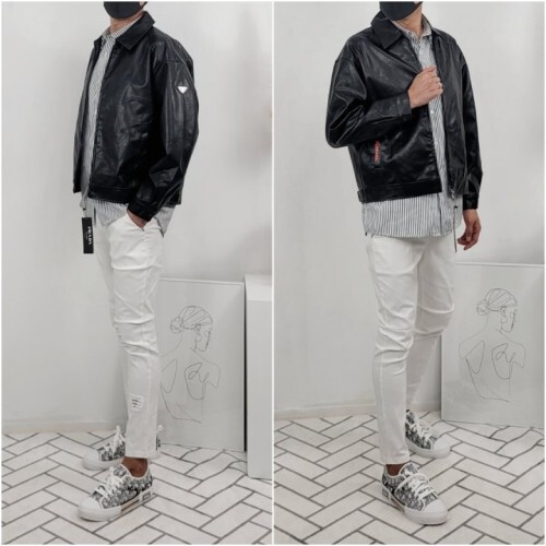 • PRADA 프라다 크랙 레더 자켓 블루종