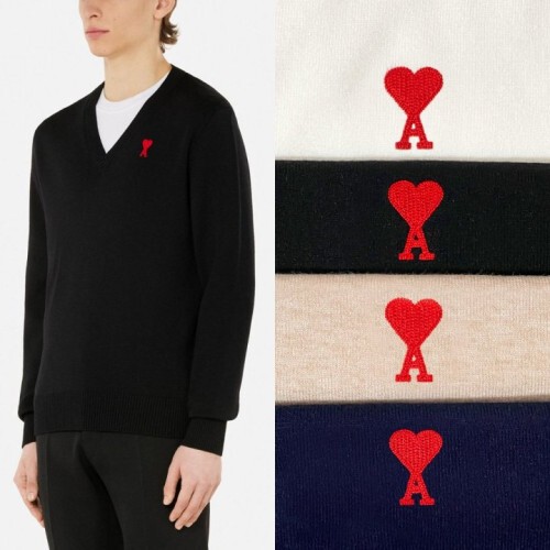 • AMI 아미 드 꾀흐 체인 자수 브이넥 니트(남성)