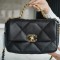샤넬 19 탑핸들 플랩백 램스킨 금장 라지