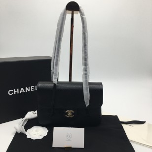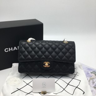 샤넬 클래식 미디움 캐비어 블랙 금장