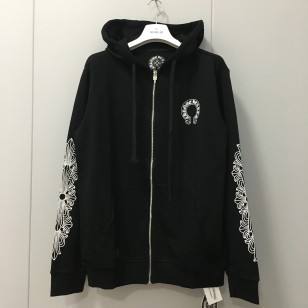 크롬하츠 홀스슈 플로랄 플리스 집업 후드 블랙