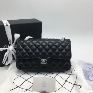 샤넬 클래식 미디움 캐비어 블랙 은장
