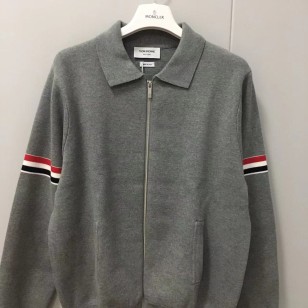 톰브라운 코튼 밀라노 스티치 RWB 암밴드 폴로 봄버 재킷 라이트 그레이