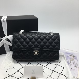 샤넬 클래식 미디움 캐비어 블랙 은장