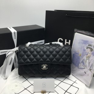 샤넬 클래식 미디움 캐비어 블랙 은장