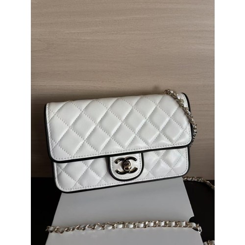 • 샤넬 미니 플랩백 램스킨 & 골드 메탈 화이트 블랙